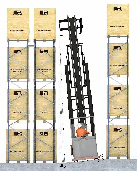 Asimismo, ha de tener un perfecto nivelado, imprescindible para el correcto aplomado de los elementos verticales. Para ello, el desnivel máximo admisible entre cualquier punto de la superficie no excederá de ± 10mm con el fin de respetar las tolerancias verticales sin un uso excesivo de placas de nivelación. No obstante, aún en el caso de que se puedan corregir el aplomado de las estanterías mediante estos elementos de nivelación, no podrán evitarse los problemas de desajuste de verticalidad en las maniobras de elevación de cargas por inclinación estática del mástil de la carretilla y por el efecto dinámico de la conducción que generarán situaciones muy inseguras de trabajo (Norma UNE-EN 15620).